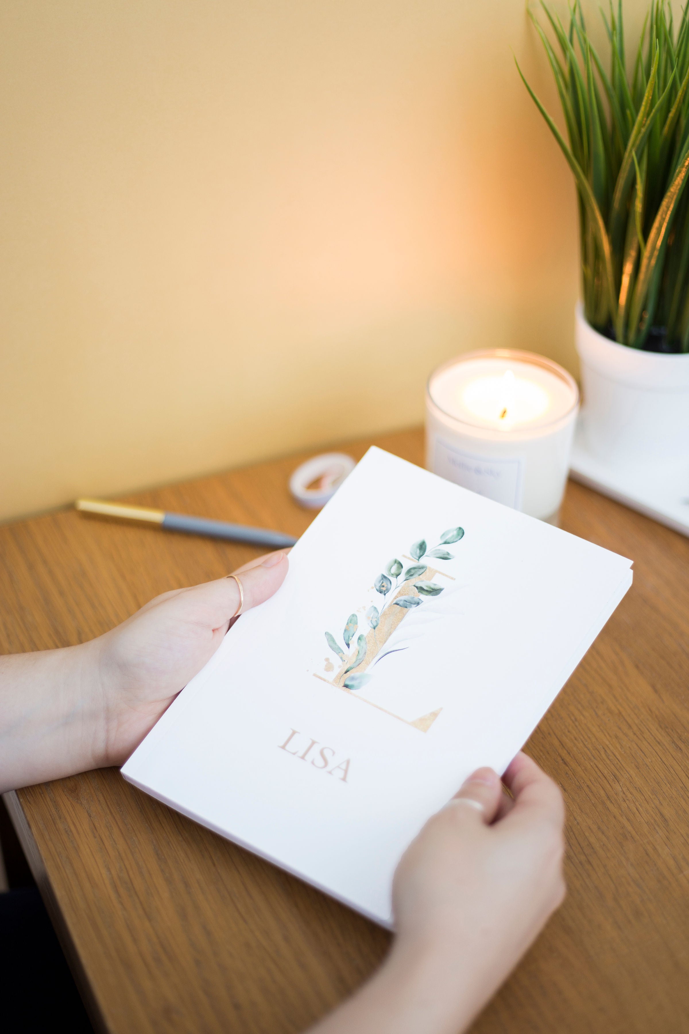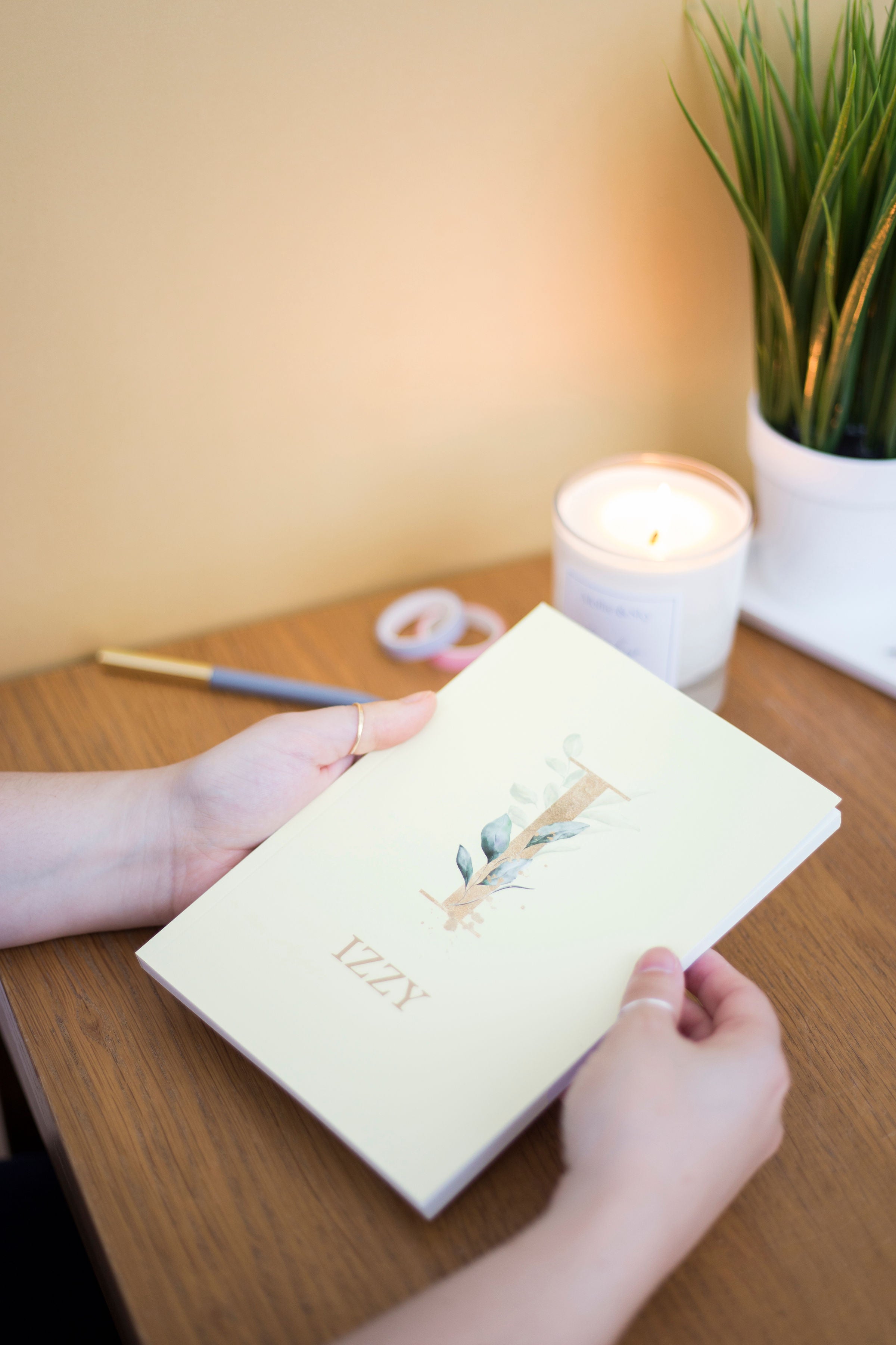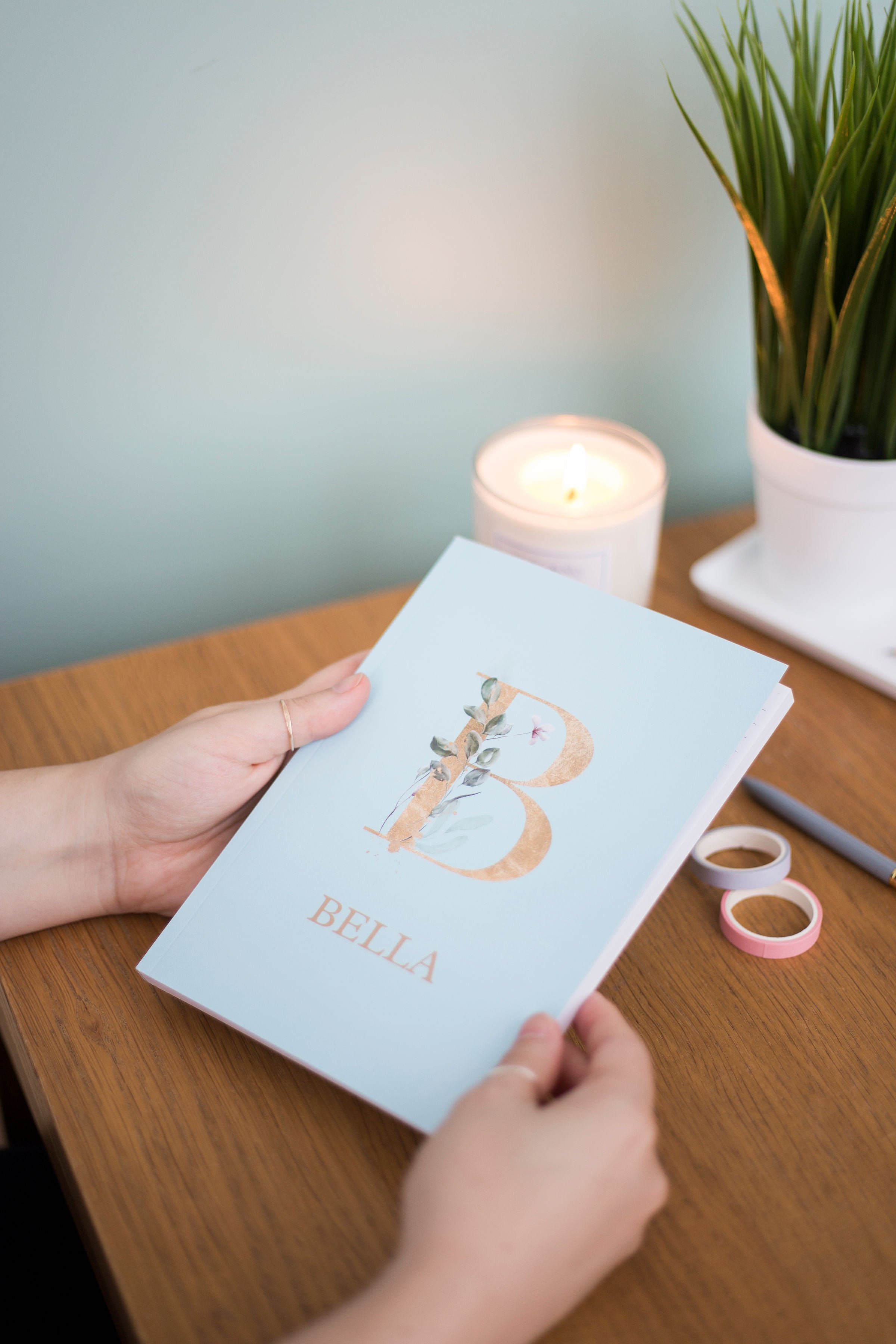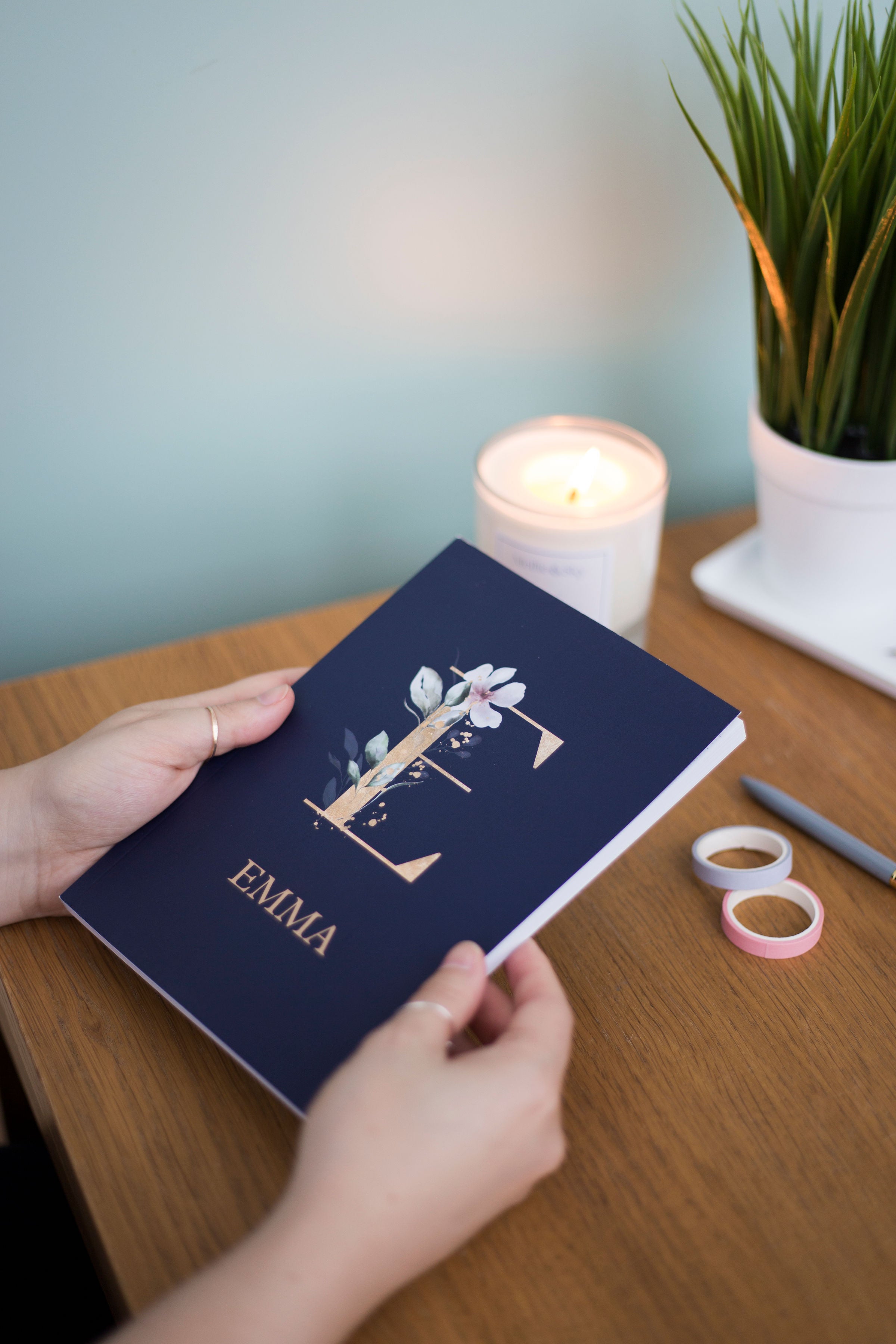 This beautiful, personalised notebook is perfect for your notes, lists and journaling, and makes a lovely gift for a friend! The pretty pastel colour options and golden and green leaf and flower design can incorporate your choice of initial letter and name. It also makes a gorgeous addition to a bridesmaid gift box.